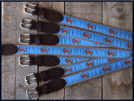 We have worked alongside many club teams and organizations to help personalize and create pieces that fit their needs.  We have no minimum order and we do not charge for any artwork or drafts that we make for you.  Once an account is established you can either order belts/products as needed or we can set up a direct link on our website to help sell and promote your inspired ribbon (please contact us for further details).  View our gallery of photos below to see what we can do.