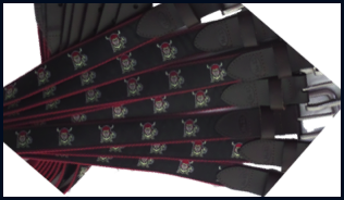 Not a club team or organization...no problem!  We have made many custom ribbons  and belts designs for stores, shops and restaurants.  Working with store managers we can make ribbon with your store logo or we can create a special pattern to fit your needs.  Below you will find both samples