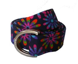 This colorful 'Flower Power' print, will certainly dress any style outfit to completion. This style was selected by us and made for you! This fabric belt is from our Signature Series Line. Each belt is hand made and made to order. This belt is pictured with our 'silver' color buckle or you can select from our other styles.