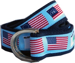 This History of the Amercian Flag print was designed by us and made for you! This ribbon belt is from our Signature Series Line. Each belt is hand made and made to order. This belt is pictured with our 'Silver' color Signature D-Ring.